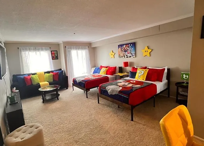 Junto con climatizador, Super Mario Universal Studios 10 Min Loft Free Parking también está equipado con TV de pantalla plana con canales vía satélite para hacer tu estancia más agradable. Las habitaciones cuentan con detectores de humo para seguridad. El apartamento ofrece 1 dormitorio. Para la comodidad adicional, se proporciona 1 cuarto de baño. También encontrarás secador de pelo y toallas.